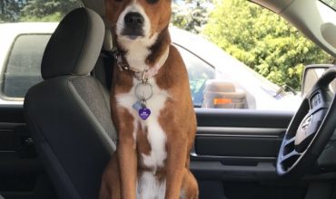 We had just lost our Border Collie, Ringo. He was 11 years old, and we said we were going to adopt a senior dog. But every time we looked, there were no senior dogs…and then we saw the Love Train coming from Tennessee, and Hemi (aka Ruby) melted our hearts. Ruby now Hemi