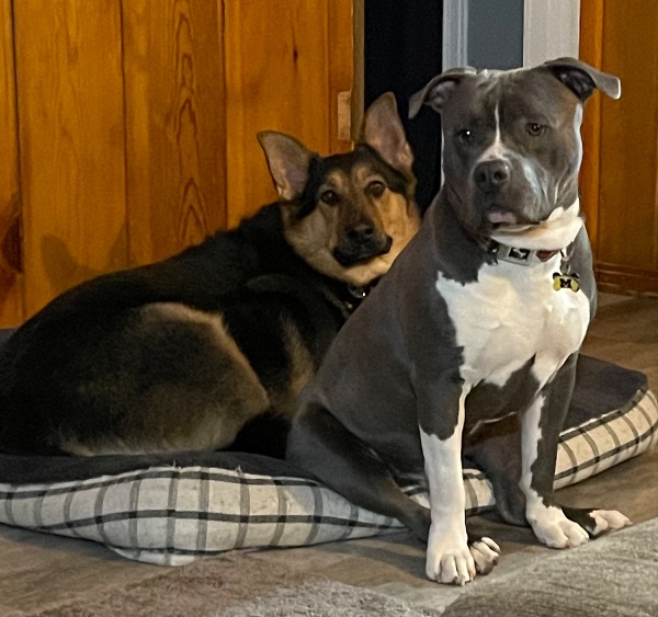 Ace came to us with some separation anxiety, but he is doing so good with his best friend Emmie to hang out with every day while we are at work! Ice now Ace