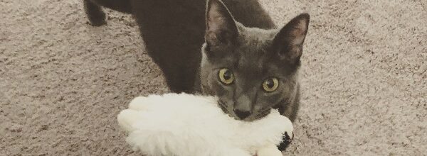 17 years ago, we bought our first home. With the increase in space we decided to go from one cat to two, giving Chloe (also from HSHV) a lifelong companion. Gandalf is still grieving the loss of his sister but has become even more loving in her absence. An elderly gentleman now, he still loves his place on the bed…right on top of the clean laundry.