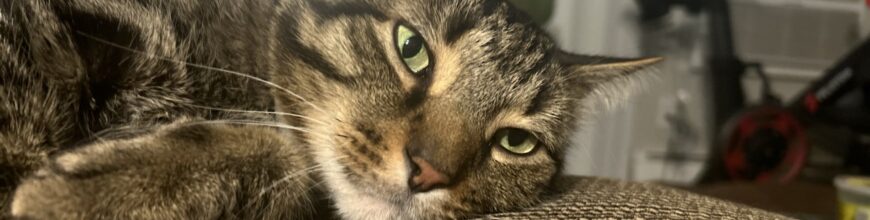 We found and adopted our first cat, Percy, in 2019, and we quickly realized that Percy was lonely and in need of a friend. We found Pablo, now Caduceus, in one of the communal rooms, where many cats (often those who don’t know each other before sharing the room) live together. This ended up being a great indicator of Caduceus’ personality and socialization. Although Percy was apprehensive at first, we introduced them over a few weeks and now they are truly the best of friends. Caduceus is incredibly affectionate, chatty, adaptable, and charming. We are so lucky to have our