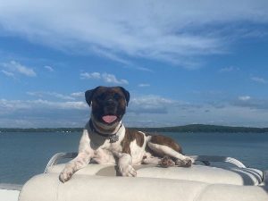 I had just moved to Northern Michigan after living in the Brighton area and I was scrolling through Facebook and saw a picture of the cutest dog from HSHV. I decided when I was visiting family for Thanksgiving I would stop in and meet him. My first thought upon meeting him was that he had the biggest head of any dog that I had ever seen, and he was adorable and such a goof! I ended up taking him home a few days later. On the 3 hour drive home he was nervous and did not really settle down. Once he finally got in the house, he got the zoomies and ran around and then passed out belly up – and I knew I was in love!